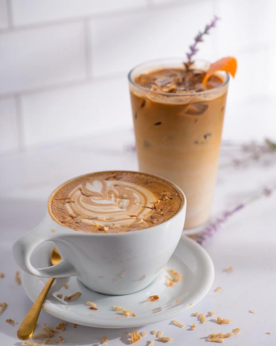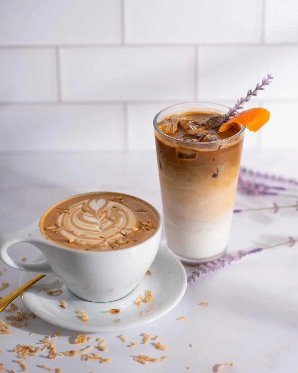 Our classic latte with a splash of our seasonal, house made syrups. Lavender or cherry blossom in the spring, spiced pumpkin in the fall, or peppermint mocha in the winter.